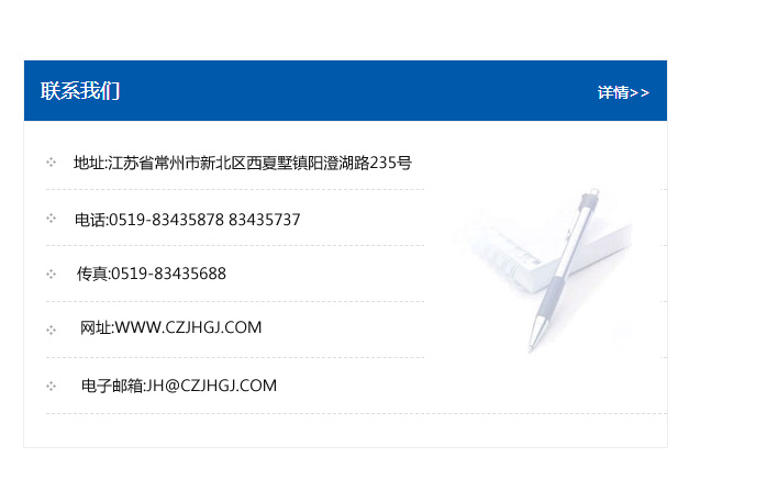 傳真:0519-83435688    郵編:213135    網址:WWW.czjhgj_com.wujinketi.com    電子郵箱:JH@czjhgj_com.wujinketi.com